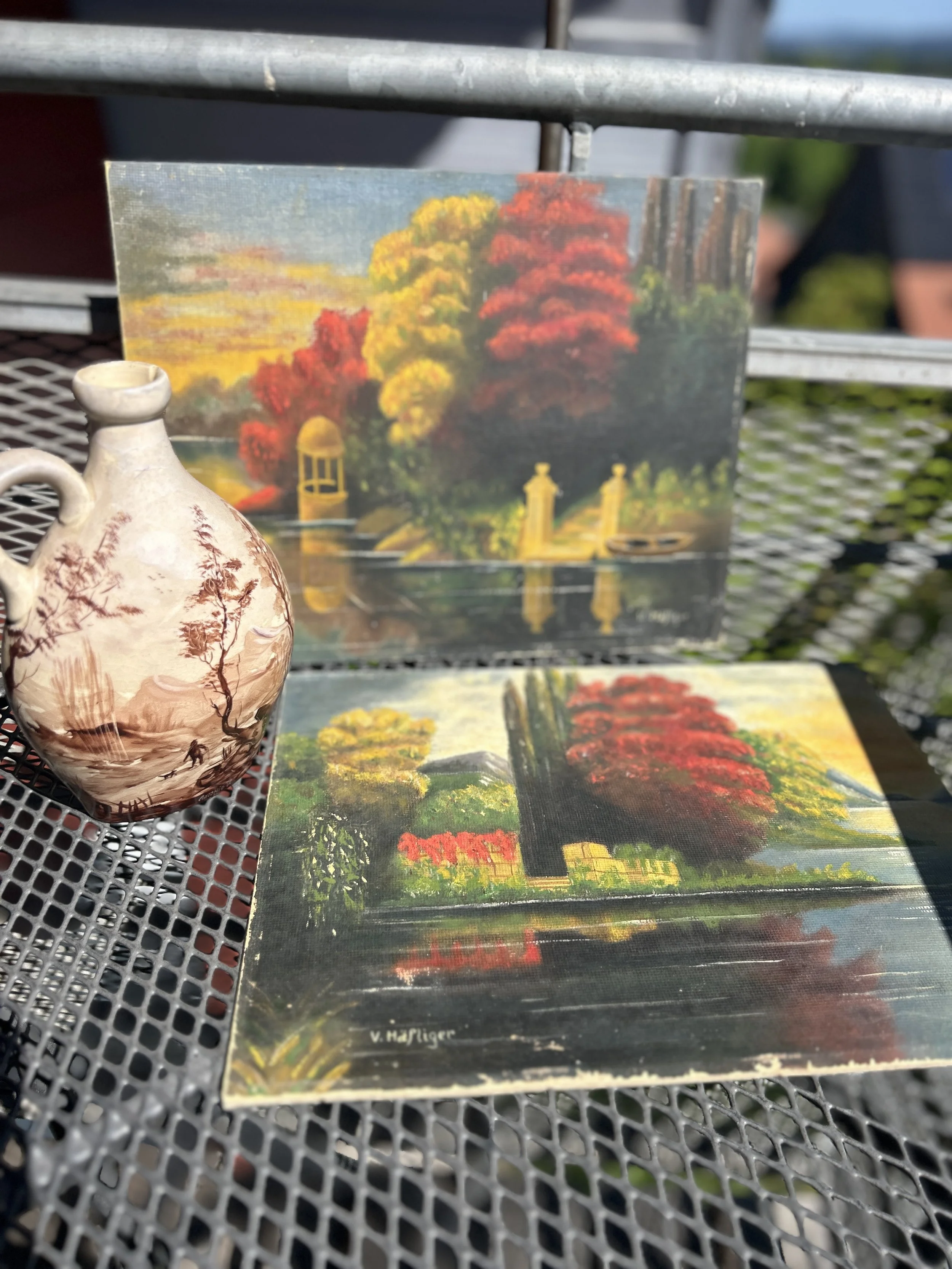 Material/Medium Categories: All First Friday Flair Gift cards Fresh Inventory Antiques Art Home Decor Serving & Entertainment pieces Glassware & Plates Trays/trivets/Platters Serving ware/utensils Material/Medium porcelain leather Brass Canvas/Board cast iron Ceramic & Clay China Copper Crystal & Glass Marble/alabaster/onyx Metal Paper Pewter Silver stoneware/ironstone Wovens Wicker Wood All / porcelain | leather | Brass | Canvas/Board | cast iron | Ceramic & Clay | China | Copper | Crystal & Glass | Marble/alabaster/onyx | Metal | Paper | Pewter | Silver | stoneware/ironstone | Wovens | Wicker | Wood | Azulejos Portugueses hand painted tile mural, Carvel ship $200.00 Sold out Antique 1918 French Kitchen Still Life Oil Painting (Copy) $230.00 Sold out Antique tabletop Walnut bookstand/riser $120.00 Sold out Vintage wheat design gilt gold wall sconce $110.00 Bas-relief large throughbred horse head wall plaque $165.00 Sold out Antique circa 19th century French Napoleon III traveling desk $210.00 Sold out Needlepoint victorian era velvet back pillow $148.00 Italy diptych pair of original oil on board $135.00 Antique French Indies style colonial valise w/leather strap buckles, $248.00 Sold out "Rose" French plate book, w/60 plates $120.00 Francois Boucher, The Mill -1751, textured print $35.00 England Mexico Switzerland Explore the World of Vintage Germany Italy Austria France Spain Denmark